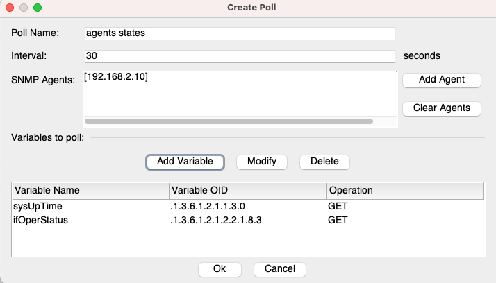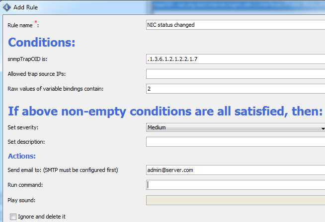 Trap receiver and watches functions run as a system service. Watches function supports action, which means you can configure actions (sending emails or traps) when a MIB object's value violates a pre-configured threshold.