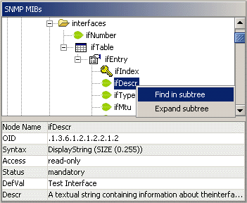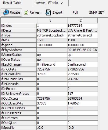 Clicking on this menu item will bring up a new table view window. But first, OID field needs to be an OID of a table or entry nodes. For example, it can be ifTable, ifEntry etc.