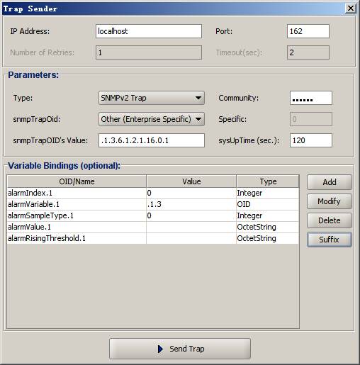 This window allows user to send out SNMPv1/v2c traps or informs.
