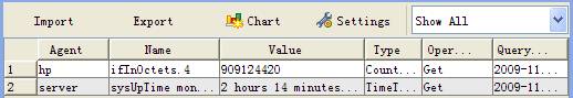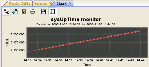 Clicking on this menu item will bring up performance graph window. But first, OID field needs to be a numerical OID value or a table column node whose instances are numerical values. For example, it can be sysUpTime, ifOutOctets, and ifOutOctets.1, etc.