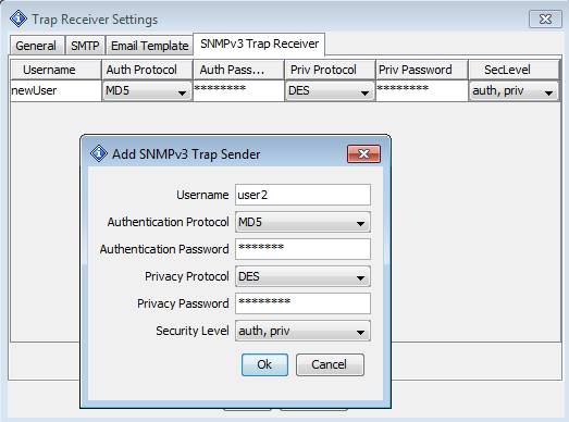 This table stores the properties of SNMPv3 trap senders. You can add or delete items from this table.