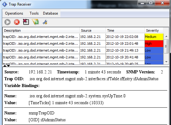 The whole trap message in HTML format, as displayed in the lower panel of trap receiver. |